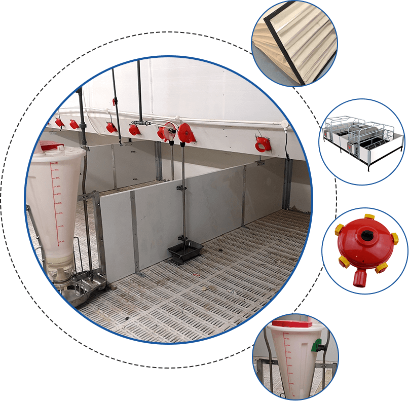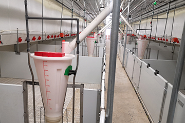 多檔調節、超大容量、濕拌料設計提高采食量20% 以上,1個喂料器可飼喂40頭100公斤的育肥豬